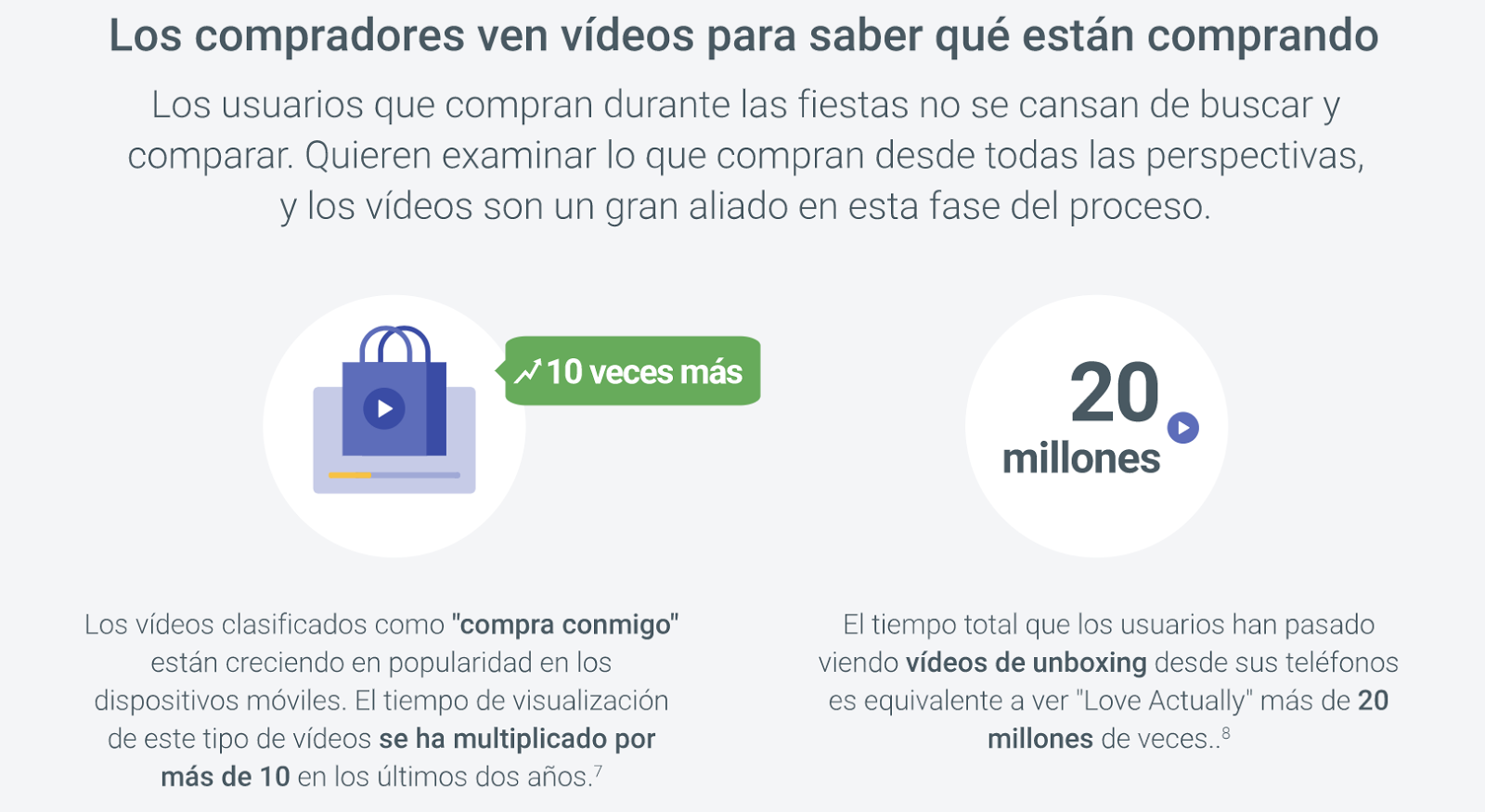 Por otro lado, a la hora de comparar opiniones de los diversos productos, el 64% de los compradores concuerdan que YouTube ha sido el canal que más ha influído en su compra, lo que significa que el vídeo tiene también una importante penetración no solo en el consumo de contenido que hacemos en la plataforma sino en nuestra toma de decisiones de compra.