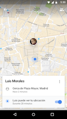 Cuando desees informar a alguien sobre el lugar en el que te encuentras, abre el menú que aparece en el lateral de la pantalla o da un ligero toque en el punto azul que muestra dónde te encuentras. A continuación, haz clic en “compartir ubicación” (share location) y selecciona con quién deseas compartir esta información. ¡Listo! Puedes compartir tu ubicación en tiempo real con todos tus contactos de Google, incluidos amigos y familiares; para ello, solo necesitas enviarles un enlace a través de tus apps de mensajería favoritas. Cuando compartes tu ubicación, las personas con las que has elegido distribuir esta información te verán en sus mapas, y tú verás un icono sobre la brújula de tu propio mapa para recordarte que estás compartiendo tu ubicación. Esta nueva funcionalidad también te permite cambiar de idea y dejar de compartir esta información en cualquier momento. Tú decides qué hacer en cada momento.