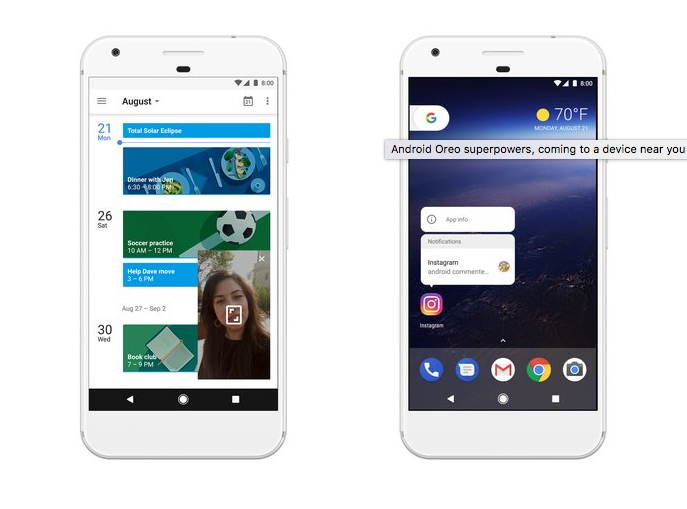 Hoy presentamos oficialmente Android 8.0 Oreo, la última versión de la plataforma, y llega con algunas funcionalidades que te darán poderes de super héroe. Android Oreo es más inteligente, más rápido y más poderoso que nunca, con nuevas funciones como la imagen dentro de imagen (‘picture-in-picture’) y Autofill, que te permitirá navegar entre tus tareas de forma sencilla. Además, tendrá protecciones de seguridad más fuertes y mejoras en la velocidad que te ayudarán a desplazarte ágilmente entre las aplicaciones.