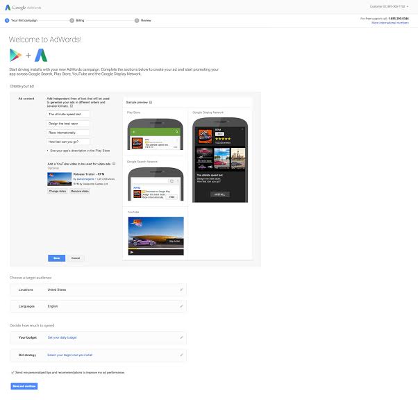 Con una sola campaña, puedes ampliar o reducir el alcance a través de Google Search, la red AdMob, los sitios móviles, YouTube y Google Play. Sólo proporciona algunos datos acerca de tu aplicación, por ejemplo, qué dirá tu anuncio creativo, a qué público deseas llegar y cuánto planeas gastar, nosotros haremos el resto. Tras bambalinas, nuestros motores de creación y subasta de anuncios te ayudarán a maximizar el rendimiento de tus campañas, para que puedas pasar más tiempo construyendo y mejorando tus aplicaciones. En los próximos meses, Search Ads en Google Play y Universal App Campaigns serán lanzados para desarrolladores y anunciantes.
