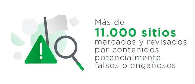 En 2017, eliminamos más de 3.200 millones de anuncios que infringían nuestras políticas publicitarias. Esto representa más de 100 anuncios malintencionados cada segundo, lo que significa que podemos bloquear la mayoría de las malas experiencias publicitarias, como el malvertising y las estafas mediante phishing, antes de que estas acciones afecten a los usuarios. Bloqueamos 79 millones de anuncios en nuestra red por intentar enviar a las personas a sitios cargados de malware y dejamos de ofrecer soporte y eliminamos 400.000 de estos sitios inseguros el año pasado. Asimismo, eliminamos 66 millones de anuncios que engañaban para hacer clic, además de 48 millones de anuncios que intentaban instalar software no deseado en los equipos de los usuarios.